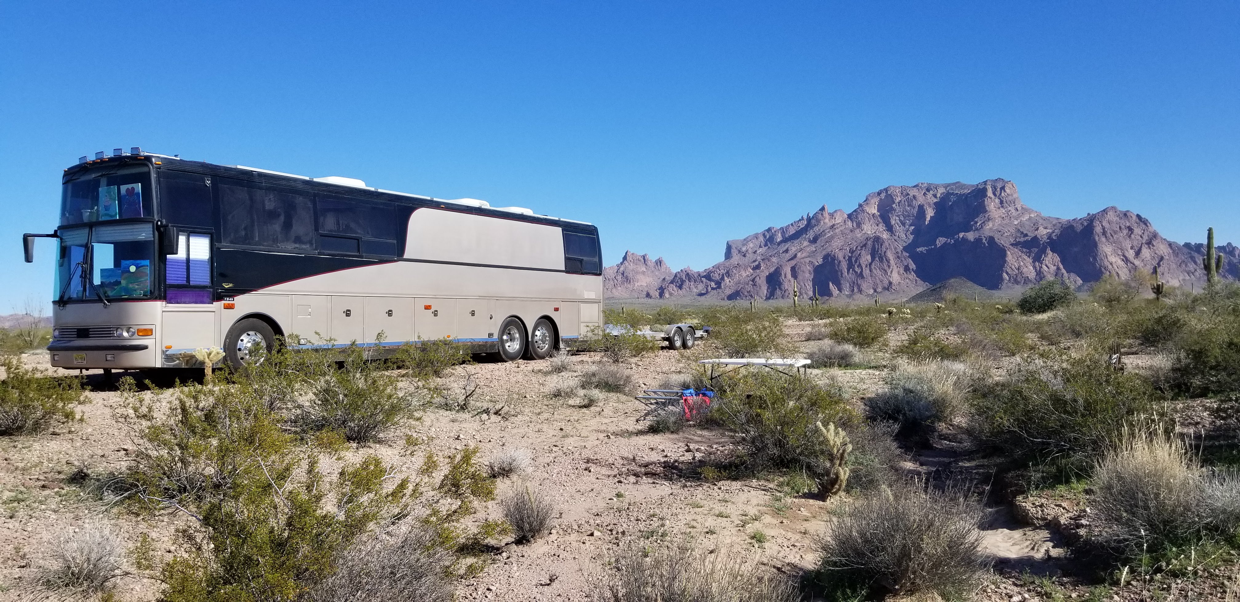 So, we bought a 45 foot, 12 bunk, entertainer coach from a NonProfit foundation (Just like the ones the musicians and movie stars use). We spent the next 6 months converting it into a self-sufficient off grid living space, while volunteering at the non profit foundation. We had no idea what we were doing, what we wanted next, but knew there was a calling. So we just went with the flow.